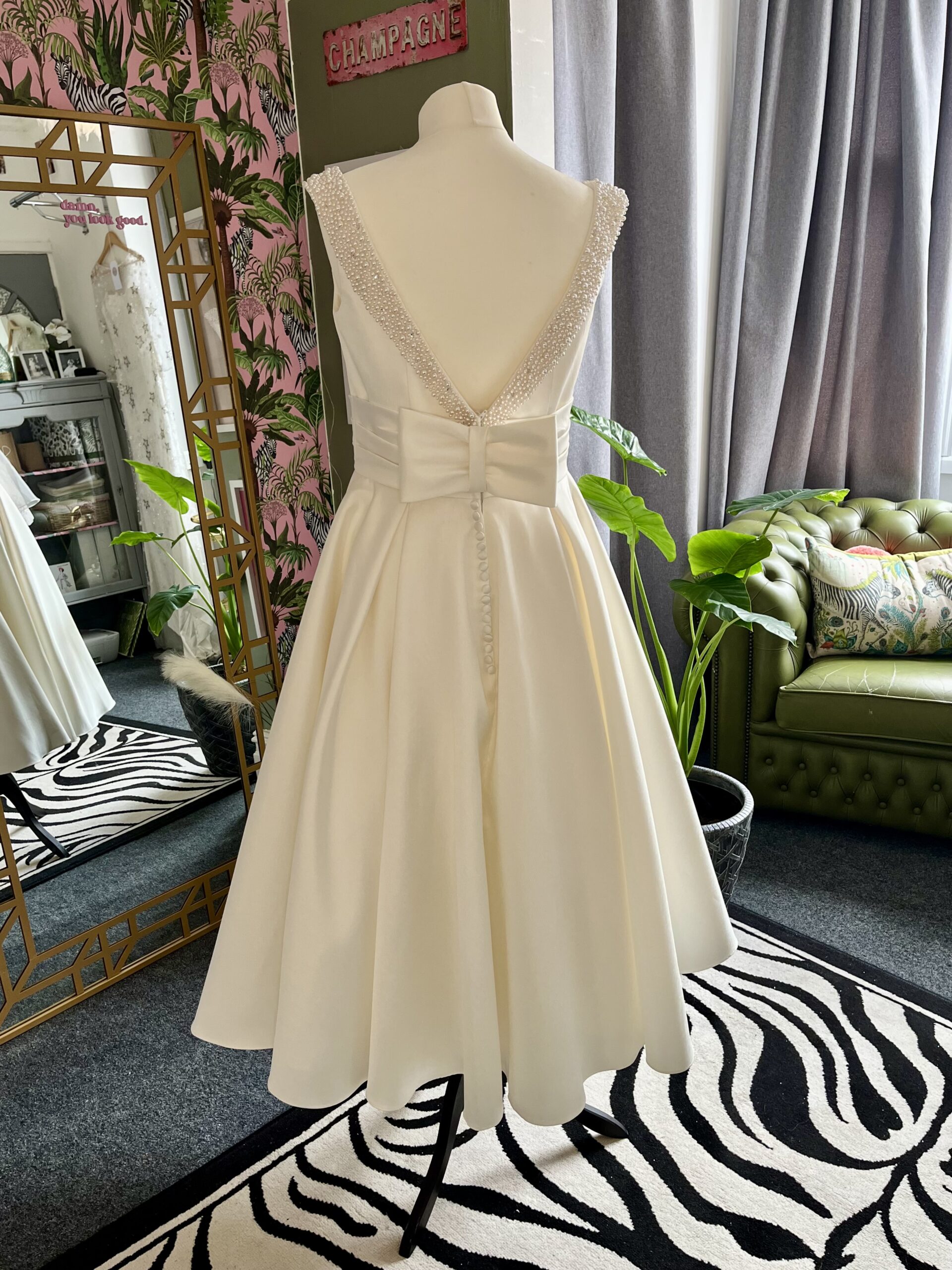 £1,100.00 True Bride Tea-Length Size 14 Quantity Add to basket Description Description Tea-length satin gown by True Bride, with open back and pearl detailing. Available in a size 14/16 ( This is just a guide as bridal sizing varies) Satin True Bride Related products Tea LengthWedding Dress £1,000.00 Add to basket Tea LengthWedding Dress £850.00 Add to basket Sale! Fit To FlareWedding Dress £1,000.00 Original price was: £1,000.00.£600.00Current price is: £600.00. Add to basket