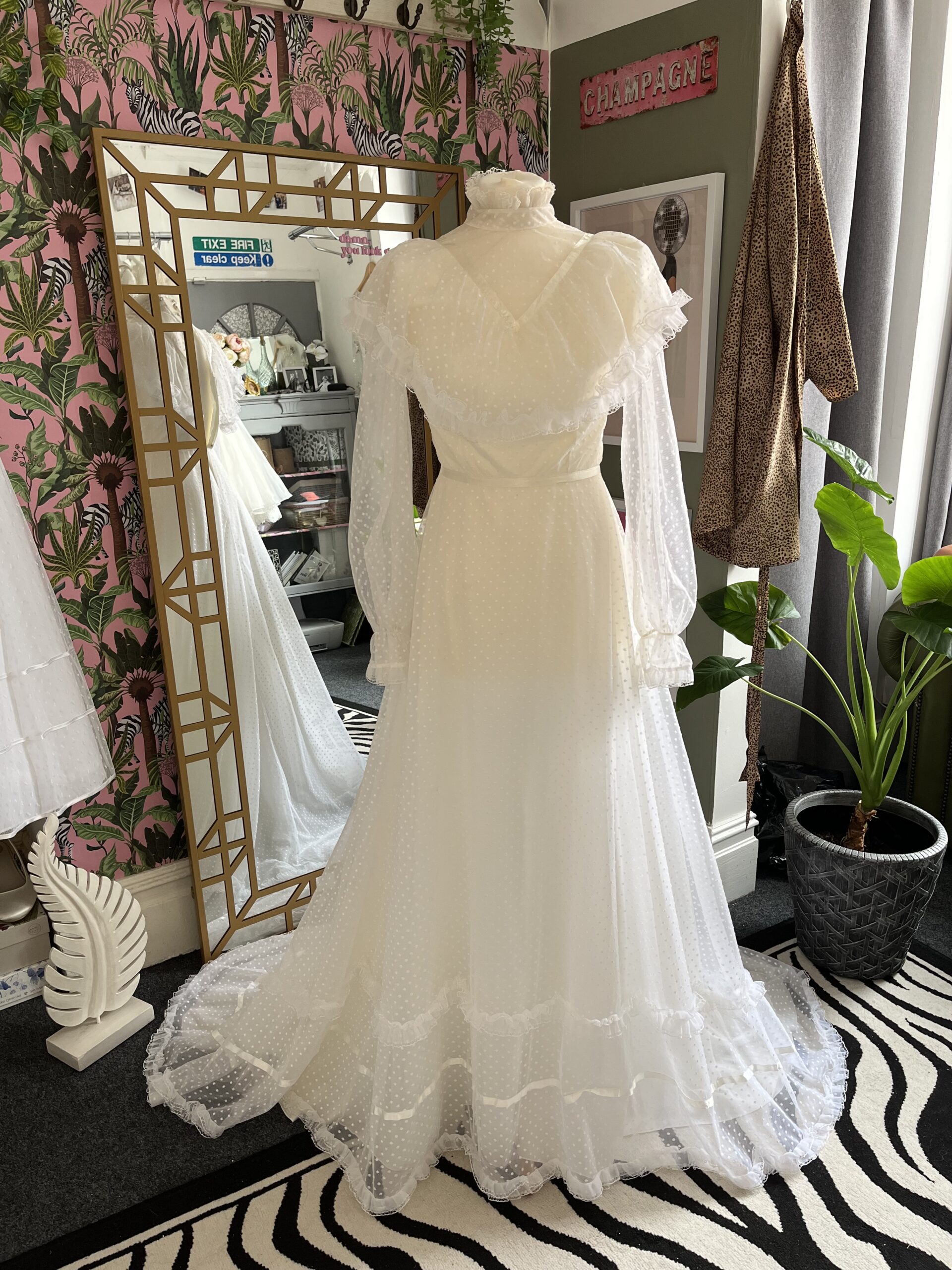£595.00 True Vintage Wedding Dress A-line Size 8/10 Quantity Add to basket Description Description This dreamy Vintage A-line gown, with its high neck and sheer polka-dot sleeves, is absolutely perfect for a bride who loves a touch of nostalgia. A-line A-line Wedding Dress Fit To Flare High neck True vintage Vintage vintage wedding dress Related products Sale! Fit To FlareWedding Dress £1,400.00 Original price was: £1,400.00.£700.00Current price is: £700.00. Add to basket Sale! Fit To FlareWedding Dress £1,600.00 Original price was: £1,600.00.£800.00Current price is: £800.00. Add to basket Sale! FishtailFit To FlareWedding Dress £1,400.00 Original price was: £1,400.00.£750.00Current price is: £750.00. Add to basket