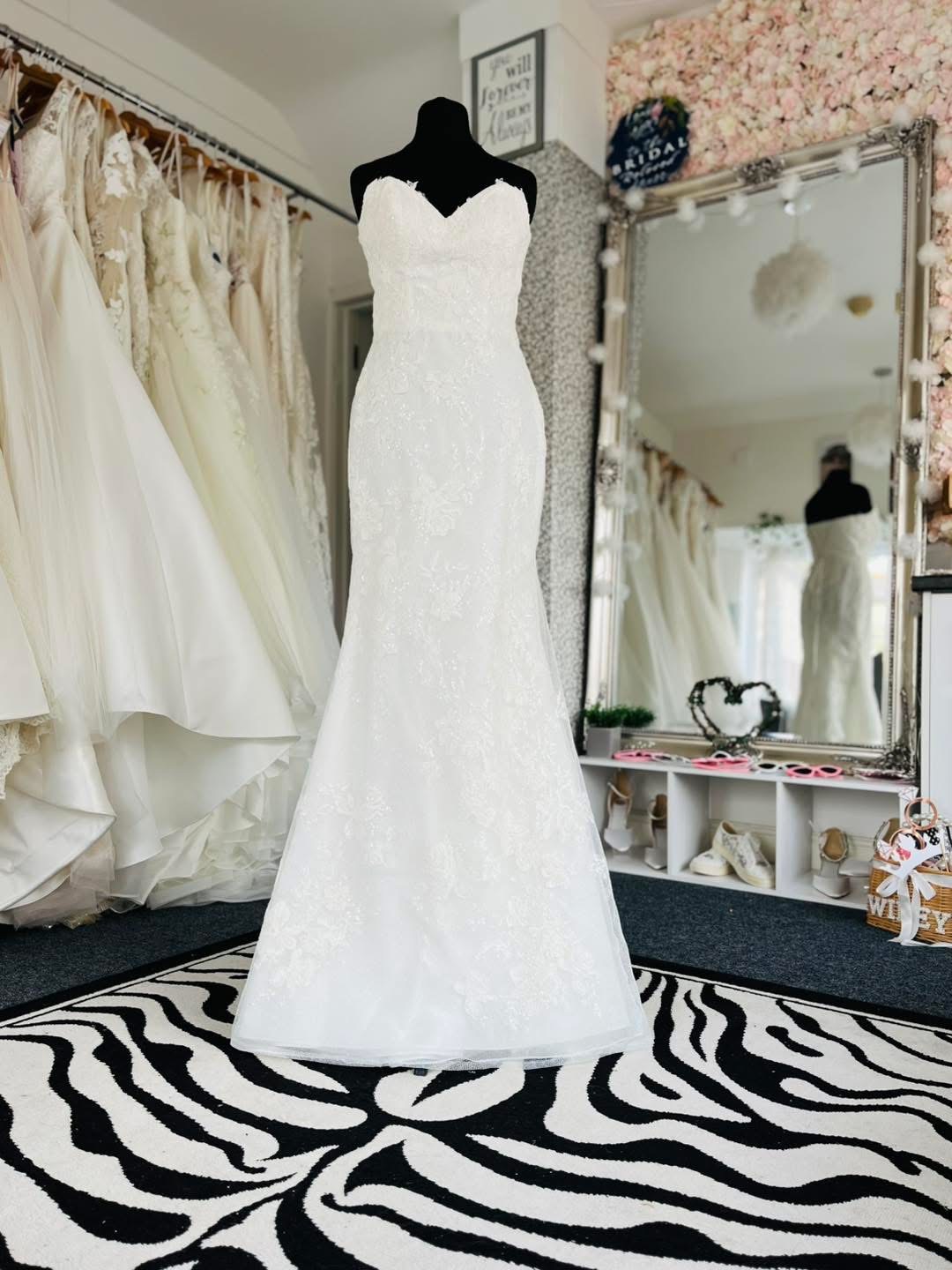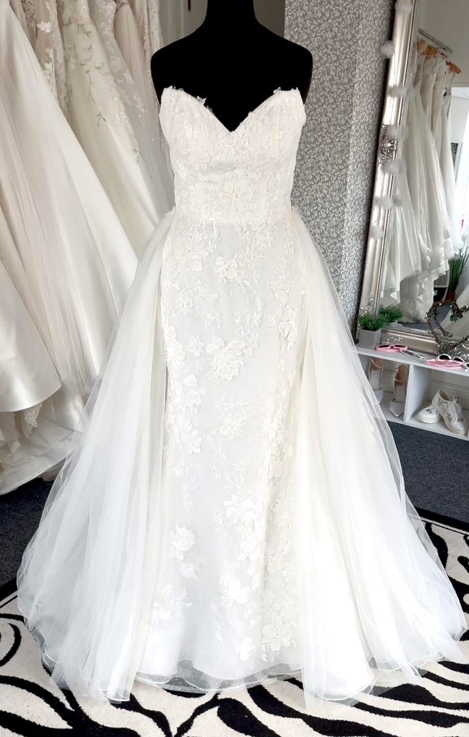 Sale! £2,300.00 Original price was: £2,300.00.£1,100.00Current price is: £1,100.00. Nieve Couture Fit to Flare dress with A-line Over-skirt Size 8 Quantity Add to basket Description Description Gorgeous fitted lace gown, featuring a sweetheart neckline and a detachable over-skirt. Fishtail wedding dress Fit To Flare lace Sparkle Strapless wedding dress Related products Sale! Fit To FlareWedding Dress £1,400.00 Original price was: £1,400.00.£700.00Current price is: £700.00. Add to basket Sale! Fit To FlareWedding Dress £1,800.00 Original price was: £1,800.00.£800.00Current price is: £800.00. Add to basket Sale! FishtailFit To FlareWedding Dress £1,400.00 Original price was: £1,400.00.£750.00Current price is: £750.00. Add to basket