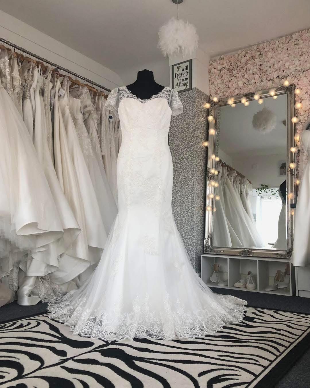 Fit to flare lace wedding dress by the incredible designer Charlotte Balbier this dress features cap sleeves, open back detailing and an incredible train.