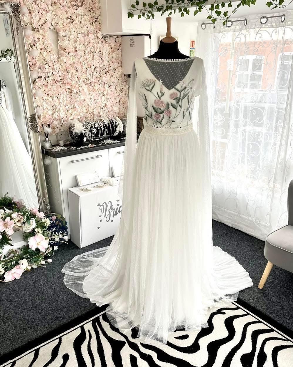 £1,200.00 Bowen Dryden A-line 2 piece Sample Size 12/14 Can be ordered in different sizes and colours. Quantity Add to basket Description Description Incredible 2 piece wedding gown, made from the softest tulle. The top is embroidered by hand and can be ordered in any colour. A-line A-line Wedding Dress Bowen Dryden Related products Sale! A-lineWedding Dress £1,600.00 Original price was: £1,600.00.£850.00Current price is: £850.00. Add to basket A-lineWedding Dress £895.00 Add to basket Sale! Fit To FlareFittedWedding Dress £2,020.00 Original price was: £2,020.00.£1,000.00Current price is: £1,000.00. Add to basket