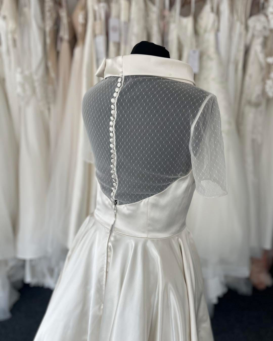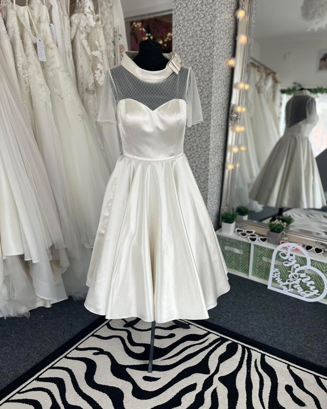 This tea-length satin beauty is absolutely perfect for a bride who wants to dance the night away in timeless style πŸ₯‚
