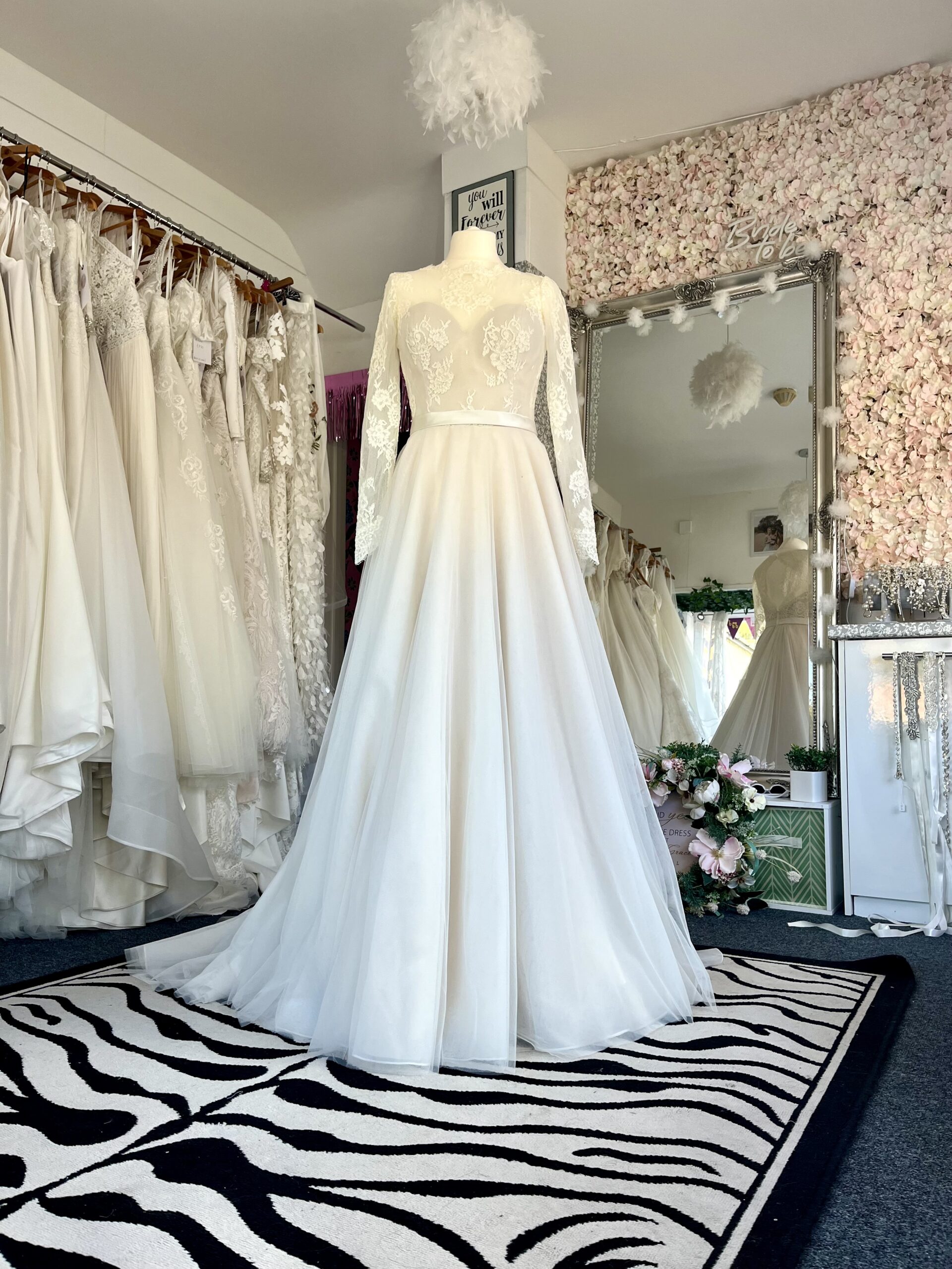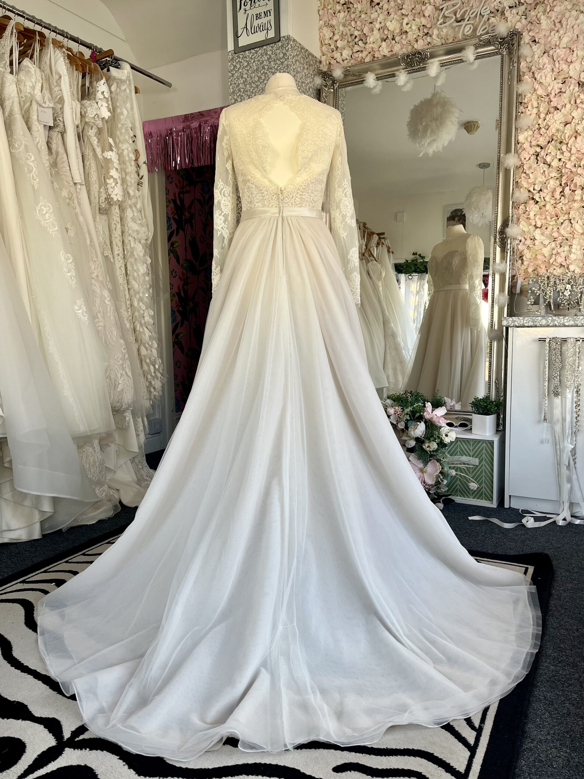 Perfect for brides seeking a refined and romantic look, this gown blends traditional charm with modern elegance.